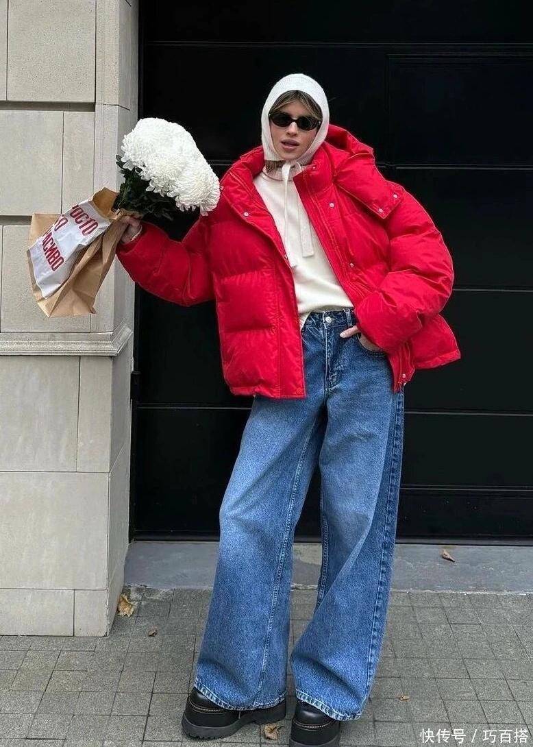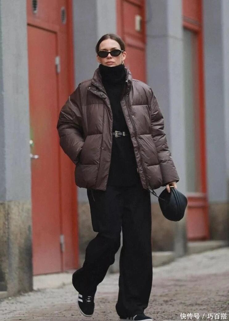 阔腿裤上身,宝石聘请各样上衣与之搭配,公共不错平直聘请修身短款缜密类上衣,比如,紧身打底外搭超短款羽绒服,用它和内里加了御寒裤的阔腿裤搭配,不错诓骗上紧下松外加上短下长的穿衣模式加多唯好意思利落氛围,皆市丽东谈主氛围尽显。