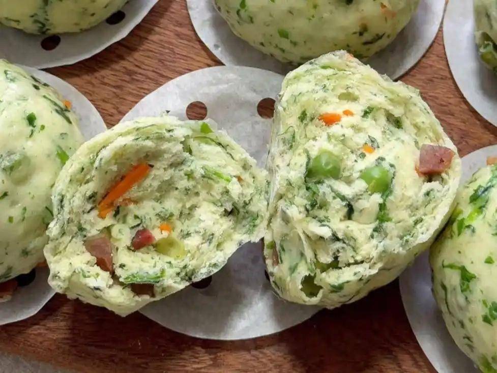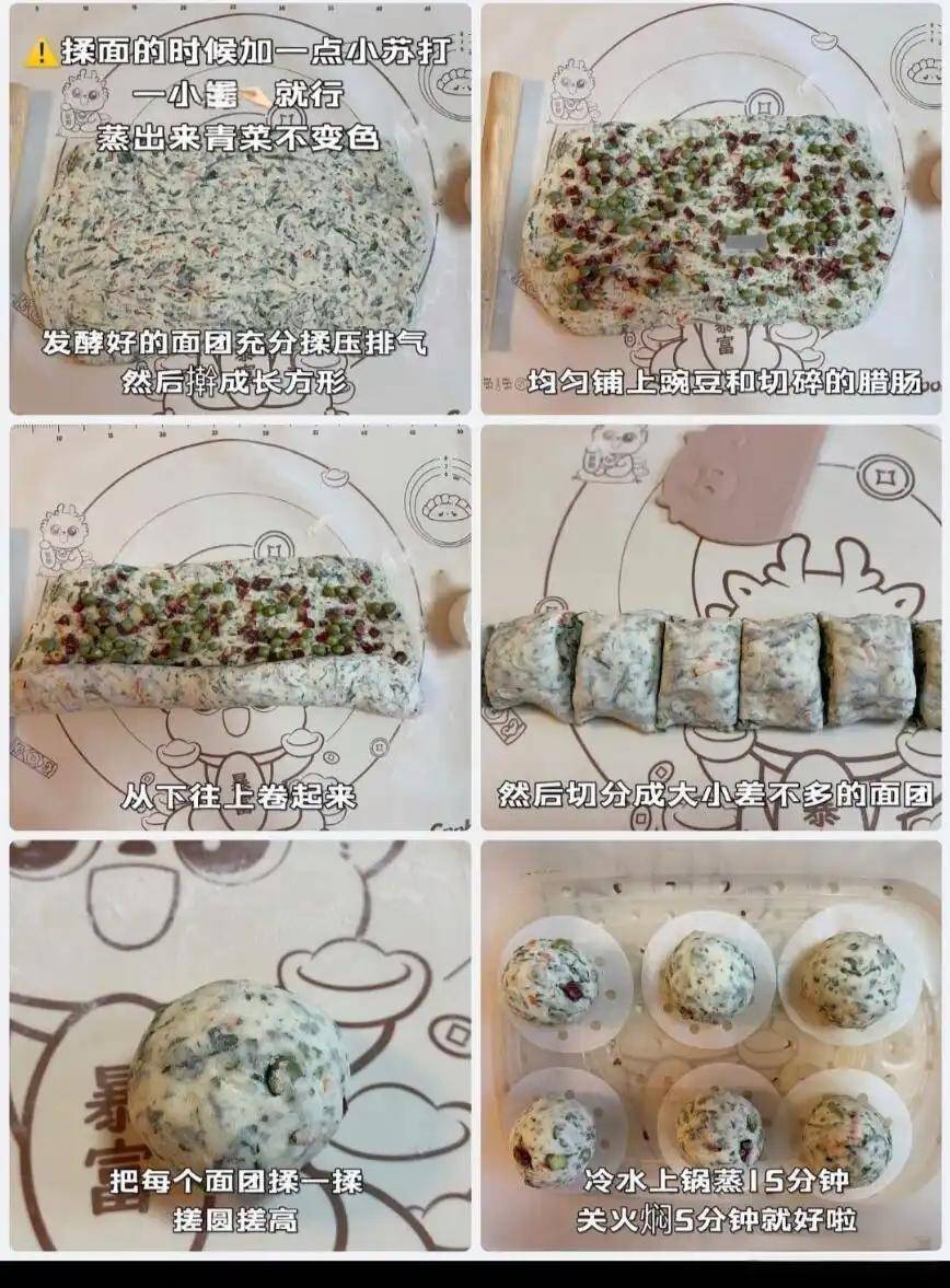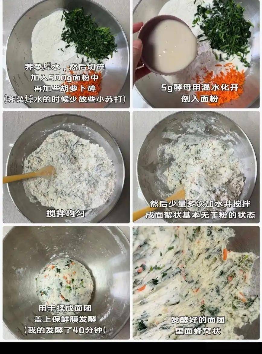 【准备食材】:荠菜,面粉,胡萝卜,豌豆,香肠