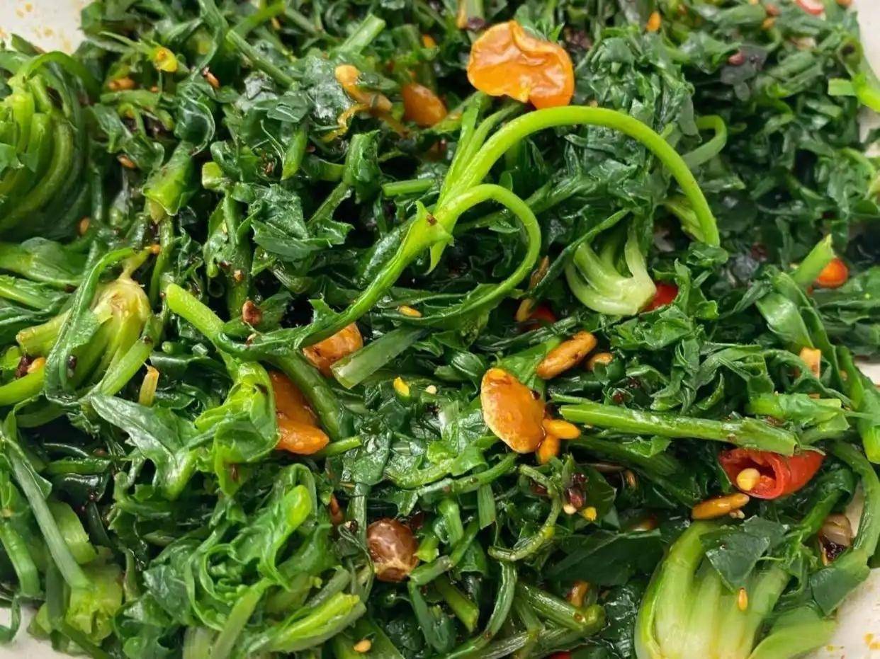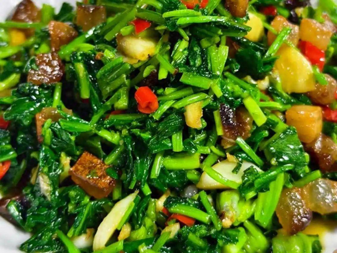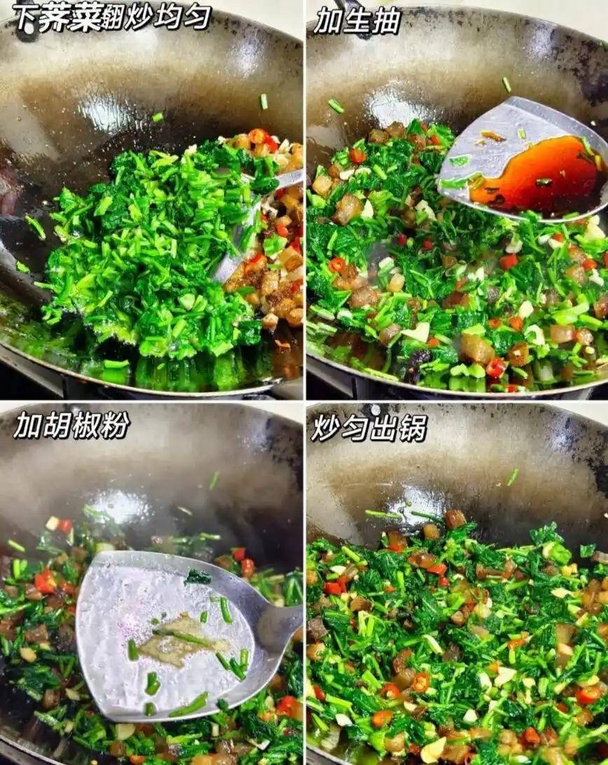 【准备食材】:荠菜,腊肉丁,大蒜,小米辣