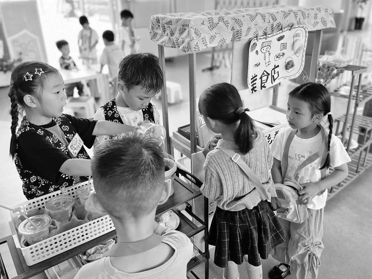 这间由孩子们解放搭建的临时暖锅店,呈现出一片冗忙而有序的策划自得,成为“卫前小镇”游戏课程天真的本质现场。